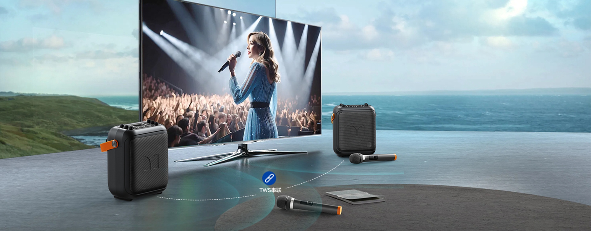 具备先进的TWS互联技术,支持两台音响无线配对,以打造环绕立体音,秒变家庭影院。