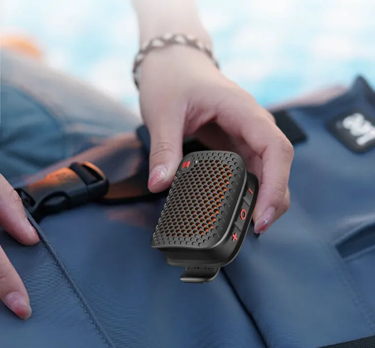 音响具有磁夹便携功能,轻松夹稳支持夹在衣物上、背包上,